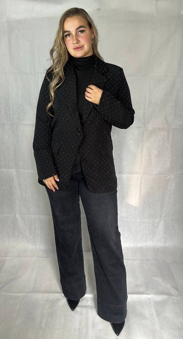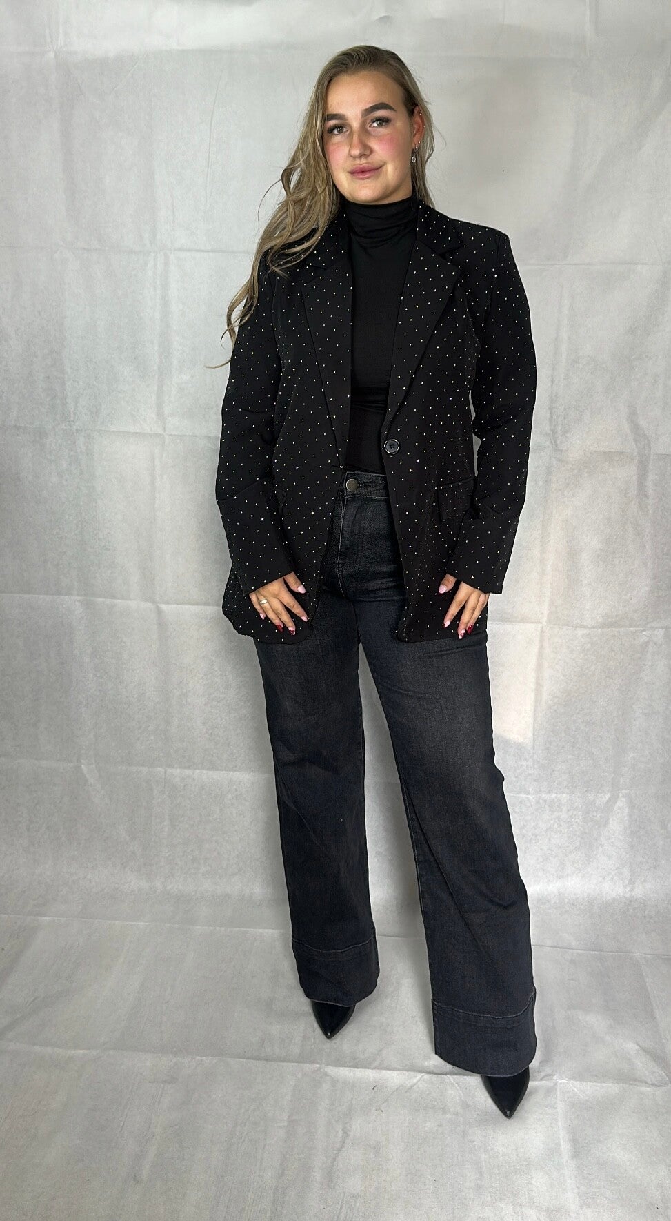 gecombineerd met de wideleg jeans black en de short sleeve top black
